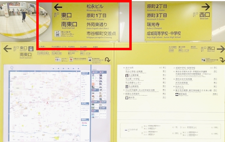 都営大江戸線牛込柳町駅の改札を出ると案内表示があります。 -
