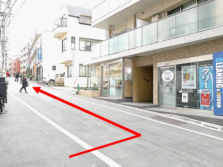松永ビルの目の前にクリーニング屋さんがあります。左折して、坂道を上って下さい。 -