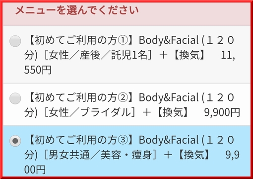 美容/痩身 Bridal 産後 Men’s